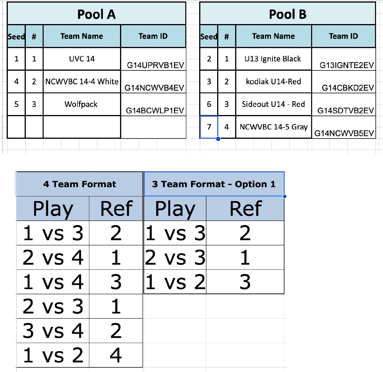 U-14 Pool & Schedule Information
